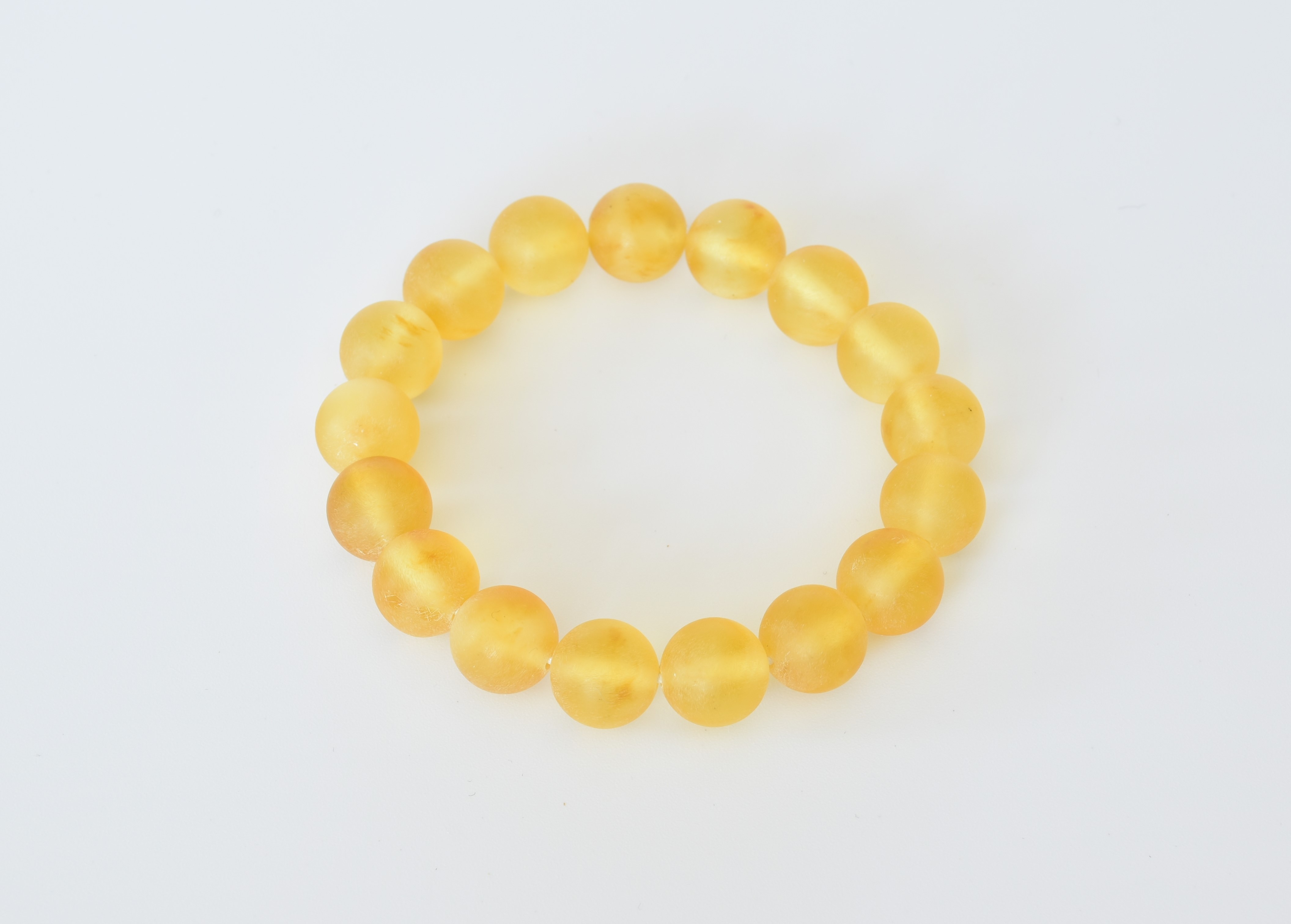 Bransoletka z bursztynu - kulki jasne matowe na gumce.
